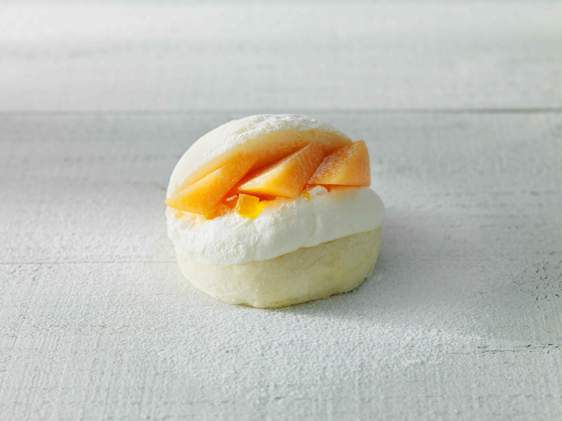 北海道産の生クリームを、おいしく食べてほしいという想いで創った大人気「生クリームバーガー」の期間限定フレーバー。赤肉メロンとメロンゼリーをサンドした夏限定のフレッシュな生クリームバーガーです。