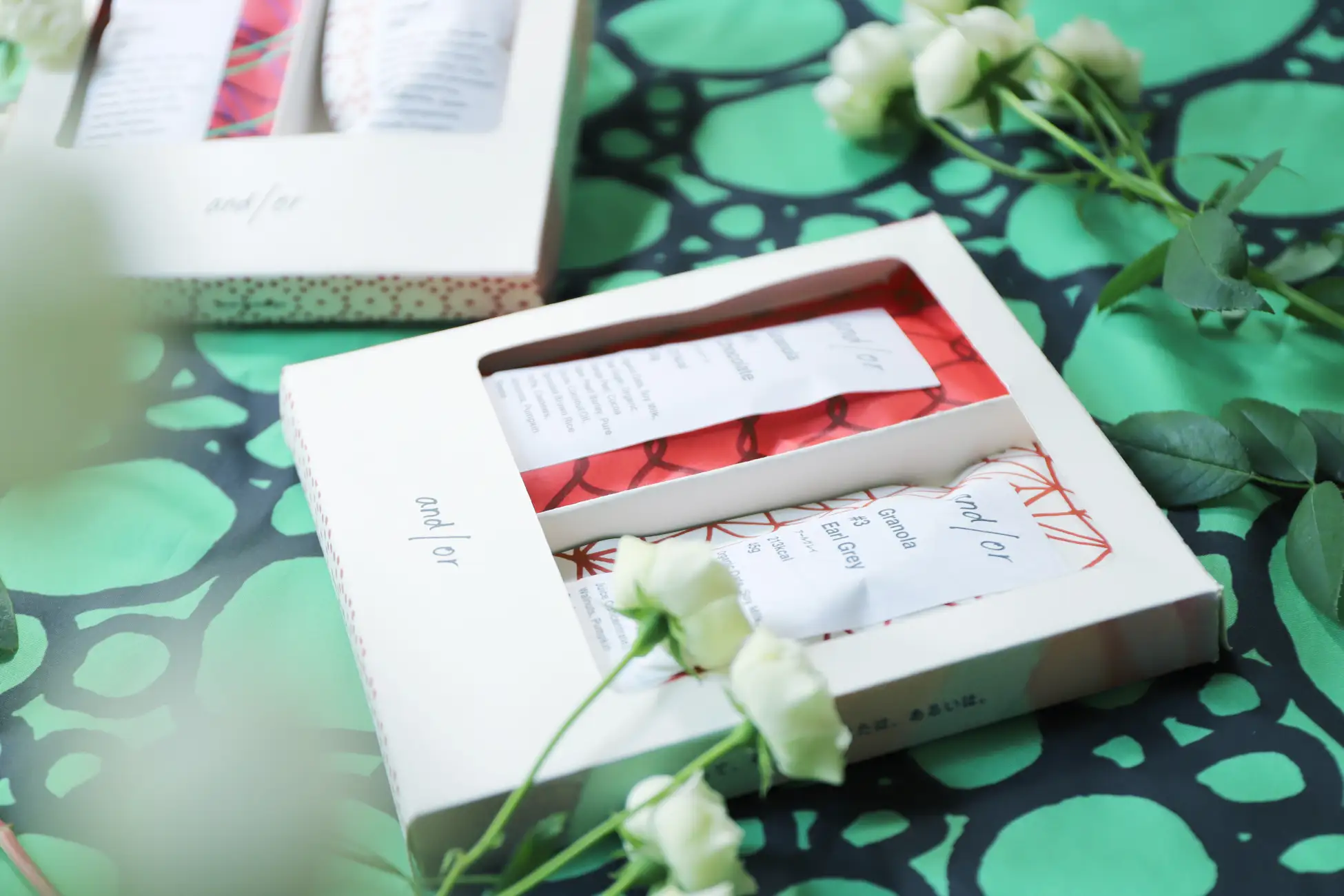 上野桜木の実店舗では、30種類のパッケージと12種類のフレーバーを自由に組み合わせて、予算に応じたオリジナルギフトを1セットから作成可能。オンラインストアでは、12種類のフレーバーと6つのパッケージデザインコンセプトから選べるギフトセットを提供している。