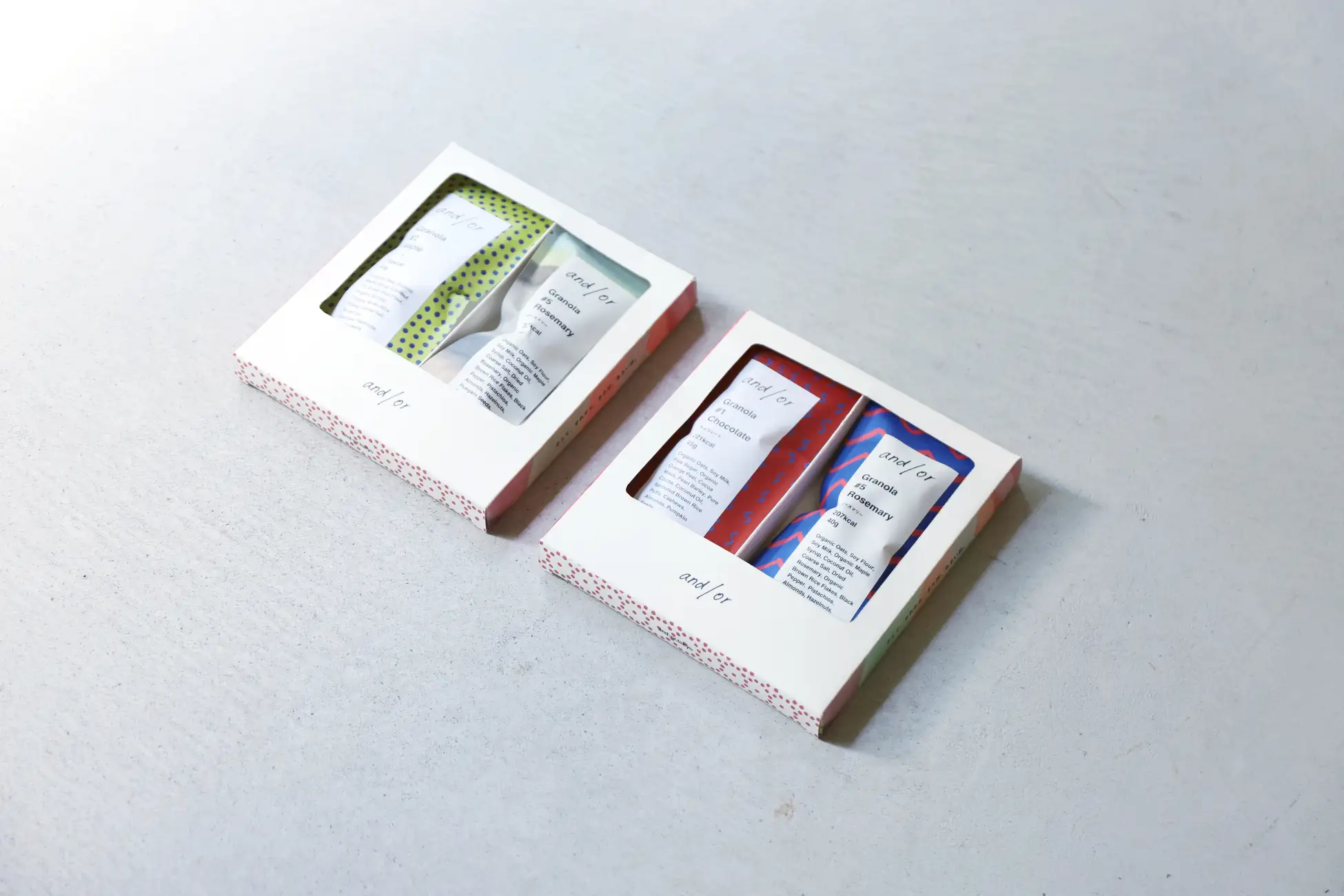 オーガニック・グルテンフリー素材にこだわるグラノーラ専門店「and/or Granola(アンドオアグラノーラ)」が、8月よりギフトラッピングを全面的にリニューアルした。新たに結婚式の引き菓子や法人ギフトにも対応できる2個入りギフトボックスも登場し、より幅広いシーンでの利用が可能になった。